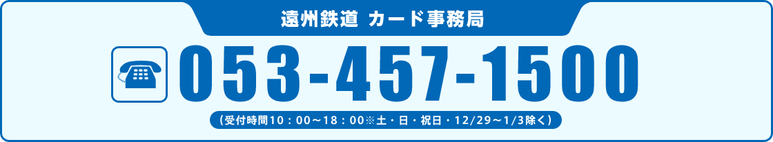 ポイント機能を停止する場合は、【遠州鉄道 カード事務局】053-457-1500(10:00~18:00 土日祝 12/29~1/3を除く)までご連絡ください。